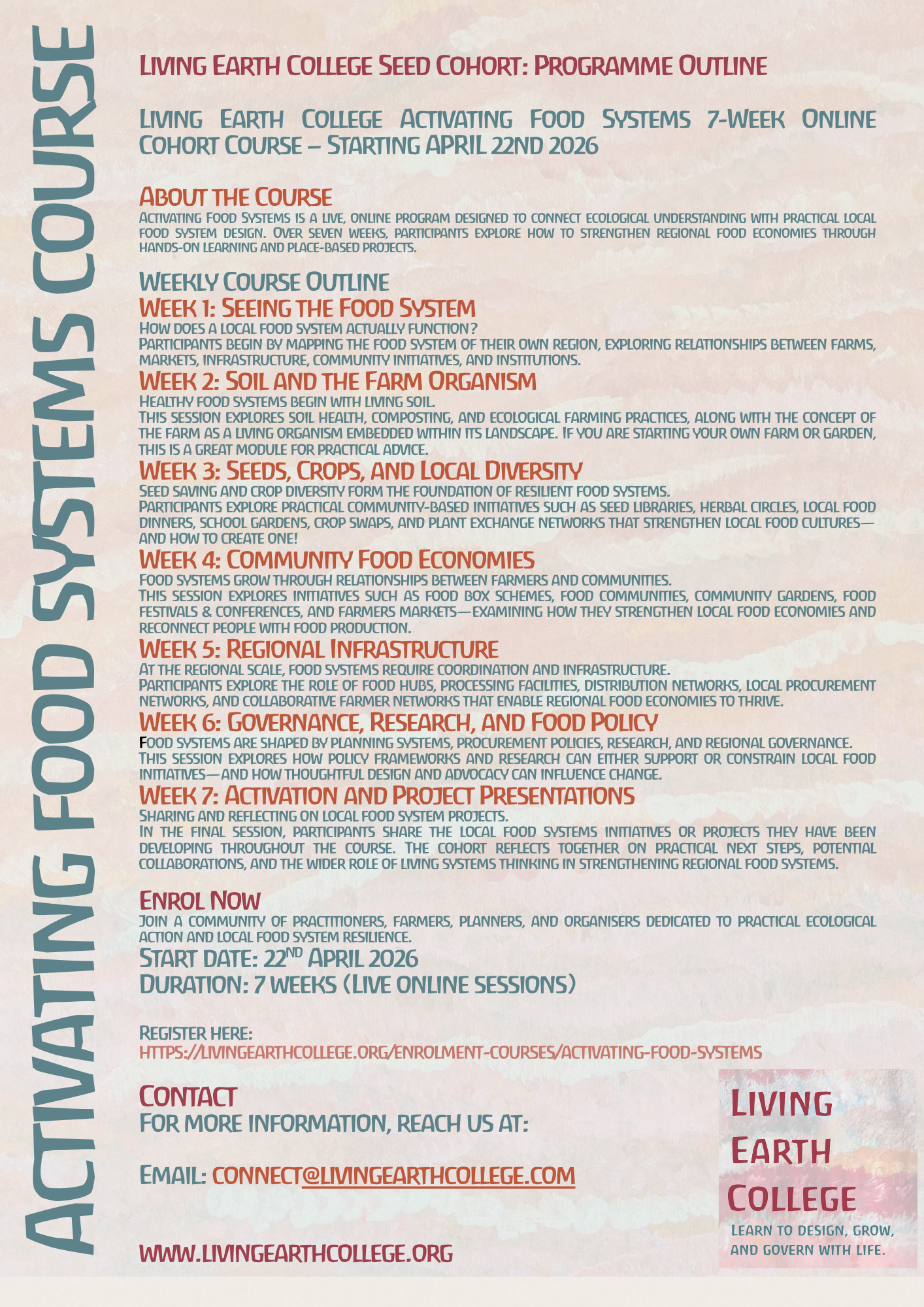 Living Earth College was created to share these insights and support people working to strengthen food systems in their own regions.
